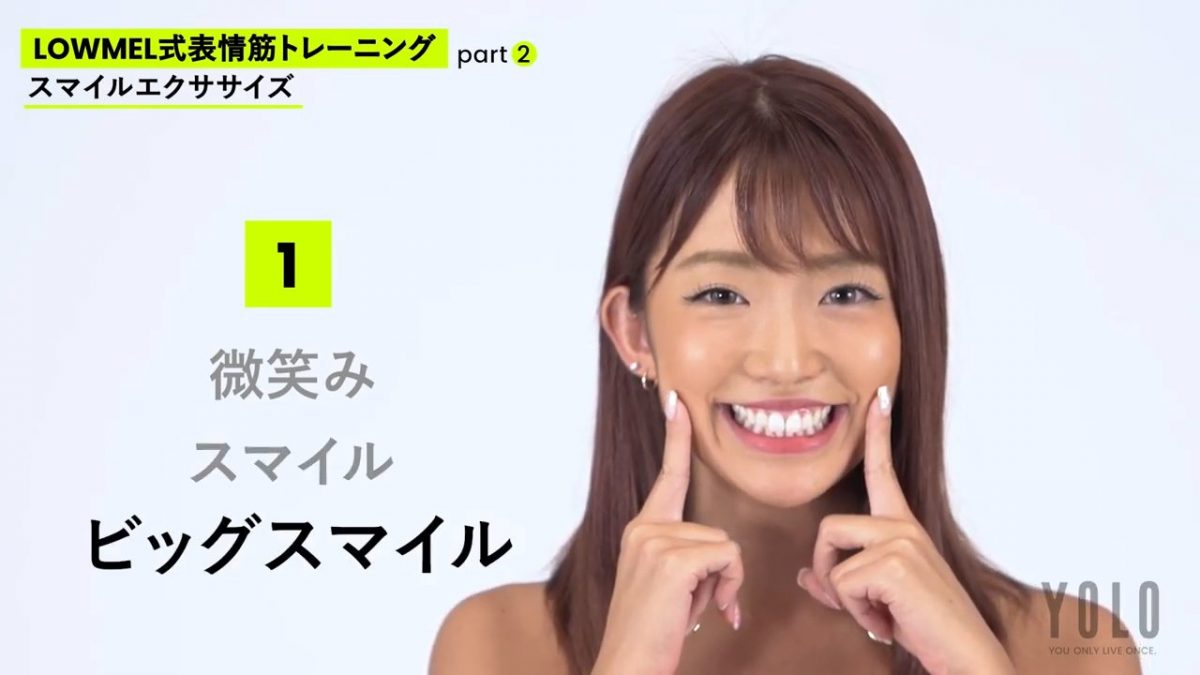 YOLOでは、パーソナルジム・LOWMELのパーソナルトレーナー、えみりーこと柳本絵美さんによる「魅力的な表情をつくる LOWMEL式表情筋トレーニング」を5回にわたって配信しています。