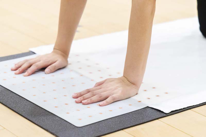 手足やお尻、腰などが床と接するようなポーズのときには、大きなパッドを敷きます。こうすることで全身から電磁波を体外にリリースすることができるのです。