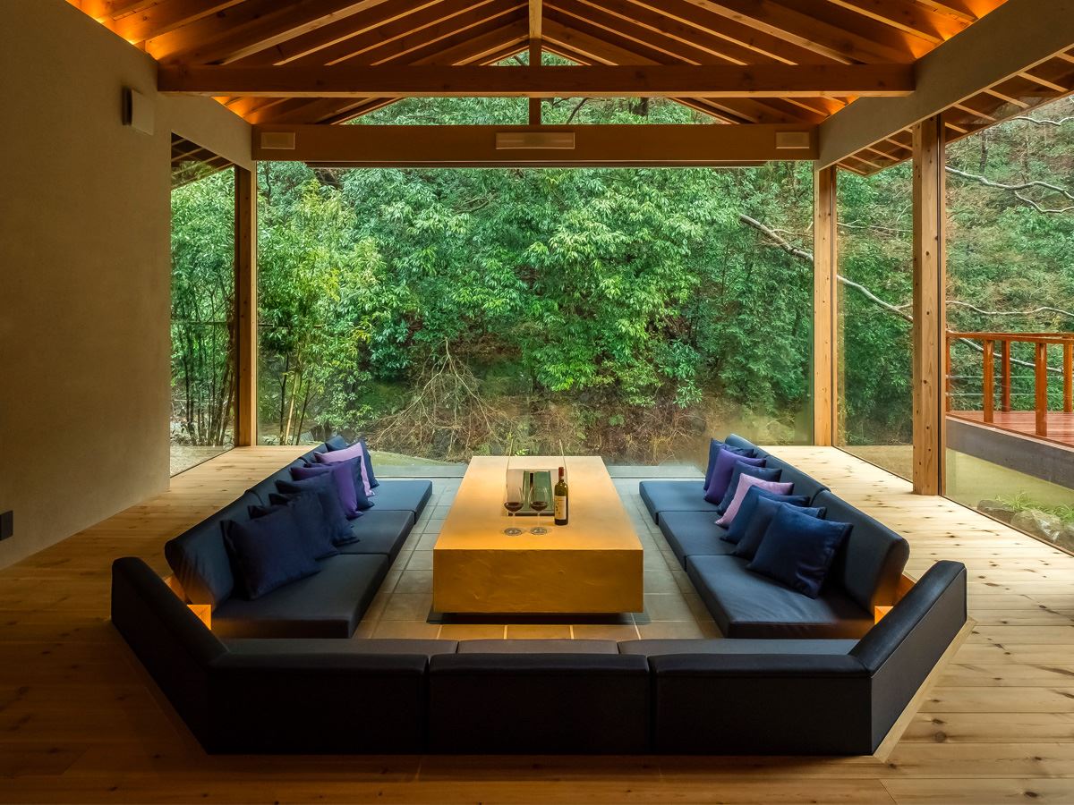 現代建築と美食に触れる、森に抱かれた全室露天風呂付き温泉宿【三輪 湯河原】