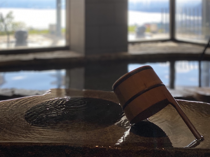 明礬の湯に浸かり、身も心も癒される至福のひと時。街にポツポツ灯る夜景を望むのもいいけれど、少し早起きして朝日をたっぷり浴びながら朝風呂に浸かるのもまた贅沢です。
