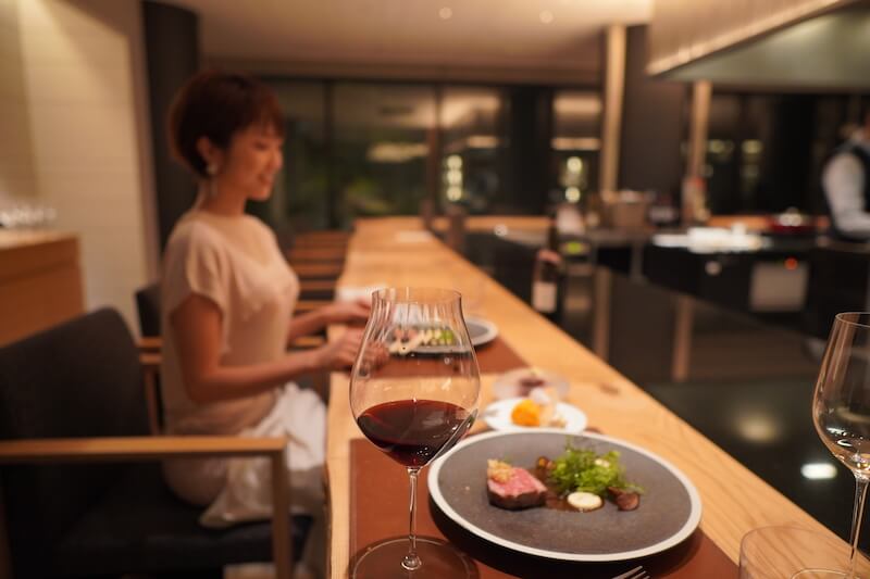 ワイン好きな方はぜひ、ソムリエが料理にマッチした銘柄をグラスで提供してくれるペアリングを。イタリア、フランス、チリ、南アフリカなどを産地にした豊富なセレクションです。別府の地でワールドクラスの食体験ができるレストラン。座席数が21席と限られているので事前の予約がオススメです。