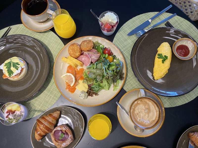 翌朝は、自然をテーマにしたオールデイダイニング「elements」にて朝食を。約20種類の野菜や副菜と、卵料理を中心としたメインを選べるセミビュッフェスタイルで、バランスよく食事が摂れて、気持ち良い一日のはじまりに。