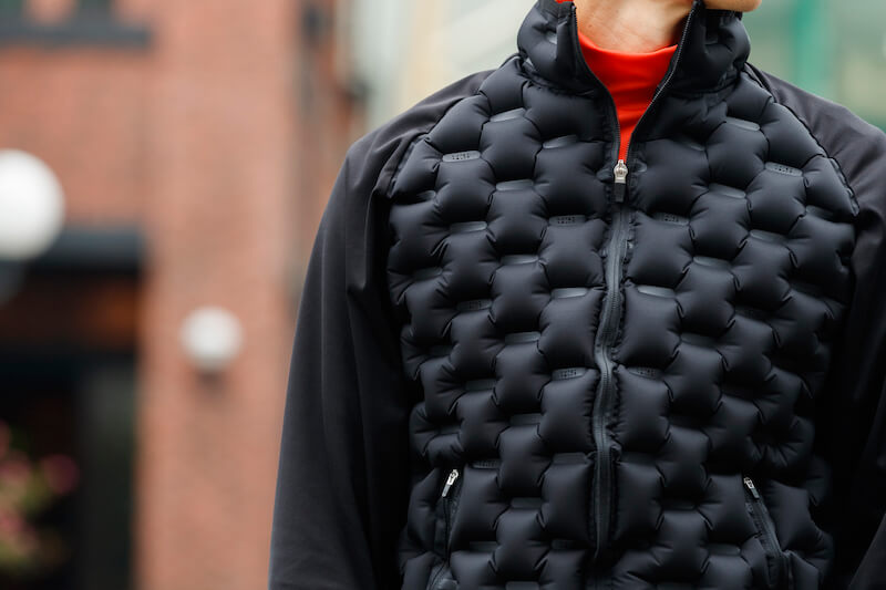 そして今回、羽毛や中綿などを使わず、空気の出し入れによって温度調整ができるエアーチューニングジャケットを開発。環境への配慮と保温性の高さの機能面を両立したアイテムです。