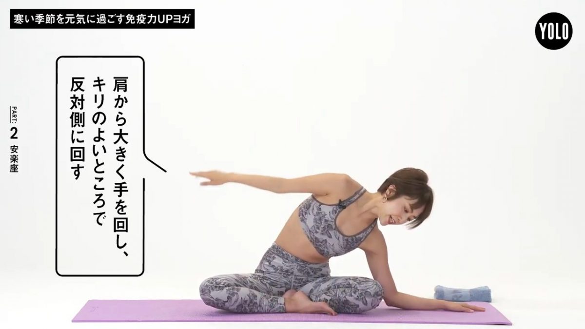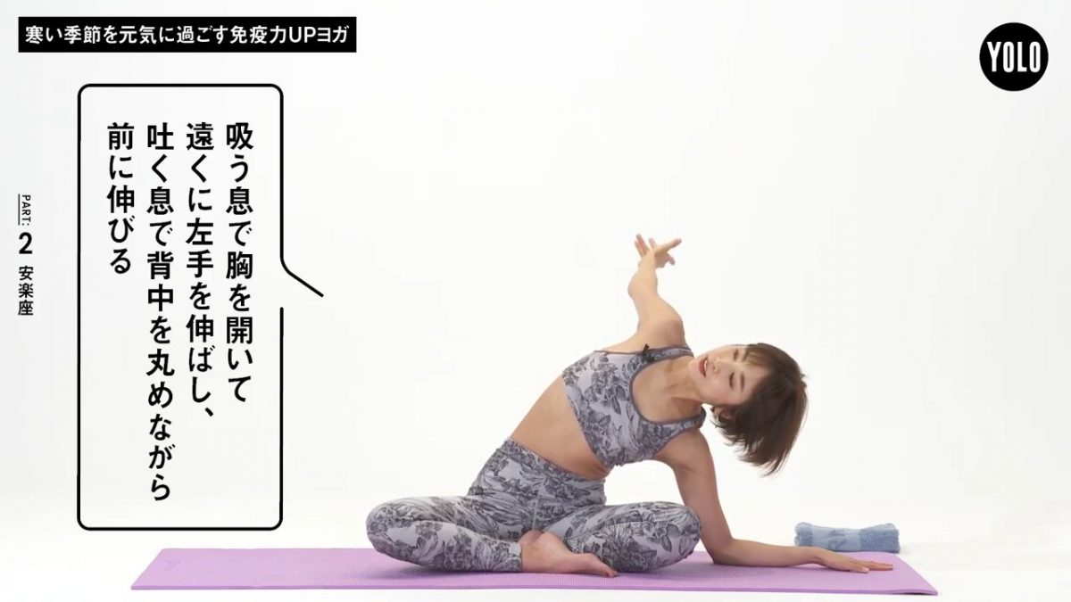 冬は体が冷えやすく、体が縮こまったりしやすいですよね。体温が1度下がると、免疫力が30%下がると言われています。そこで、ヨガインストラクター・渡辺由布子さんによる「寒い季節を元気に過ごす!免疫力UPヨガ」を全7回にわたってお送りしています。