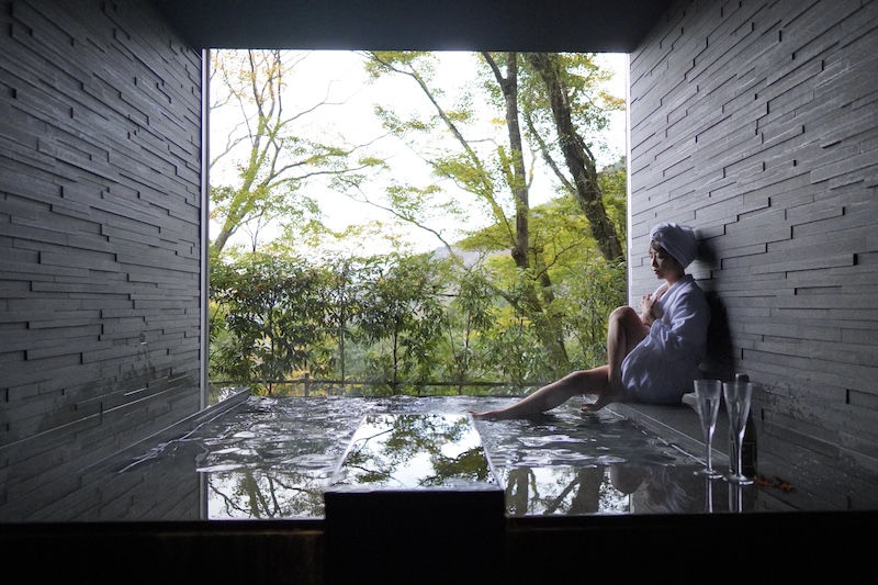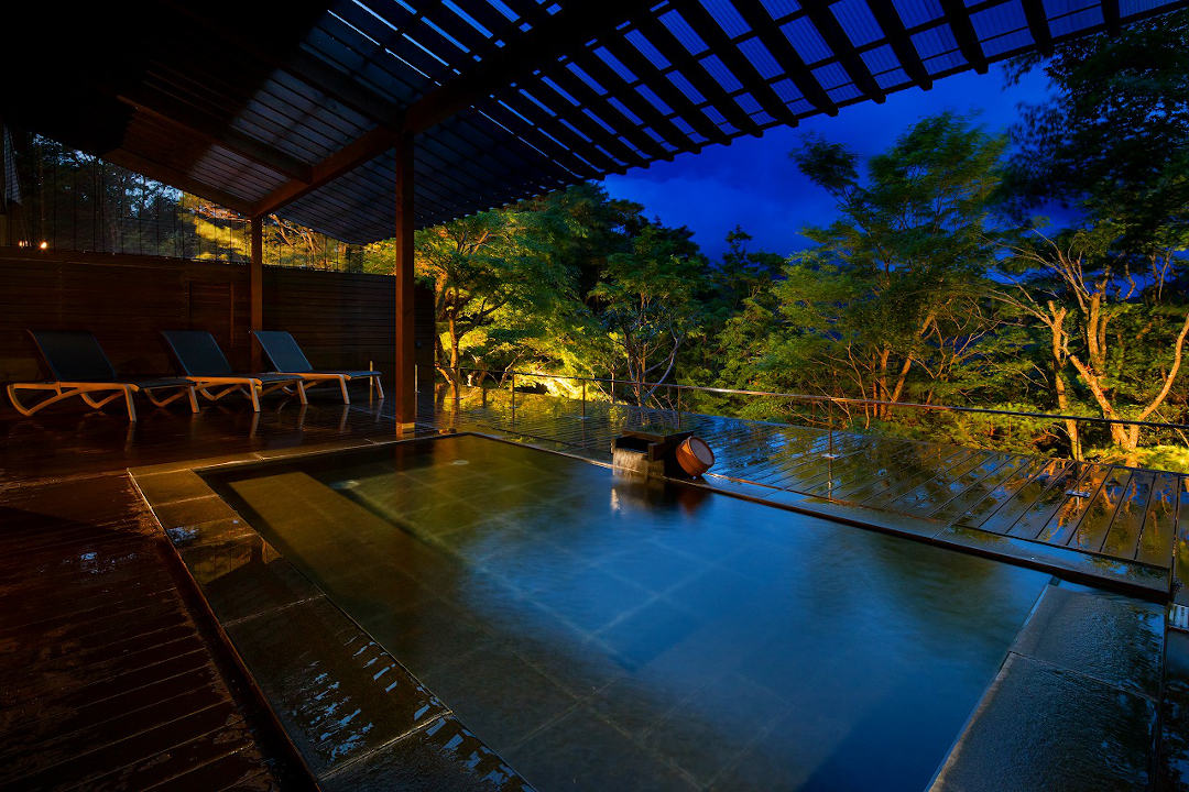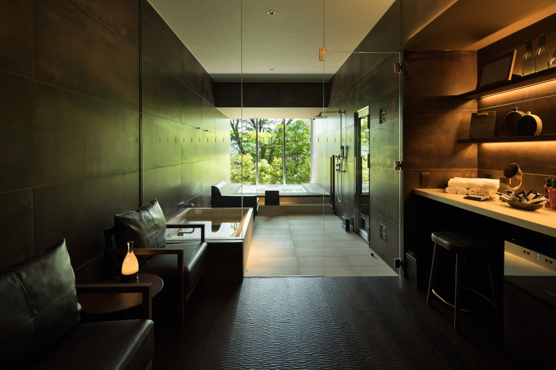 大浴場は「spa kazan」と「spa hinoki」の2種類があり、朝と夜で男女入れ替わりますが、サウナ+水風呂+露天風呂付きの「kazan」が圧倒的にオススメです。開放感溢れる露天風呂では、刻一刻と移り変わる美しい景色を眺めながら、箱根の良質な湯をいつでも(なんと深夜3時まで!)心ゆくまで愉しむことができます。たっぷり汗をかいた後はお酒がより一層美味しく感じられるでしょう。