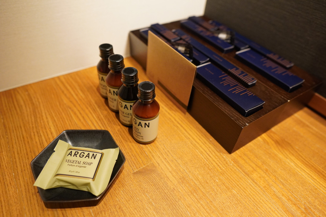 客室にバスタブはないものの、最新のシャワーブースを配し、アメニティには海外のACE HOTELなどでも採用していた「ARGAN」を取り入れています。