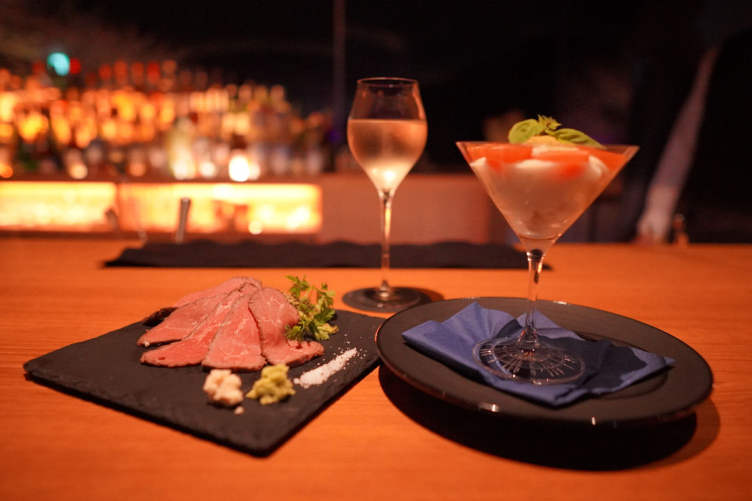 到着後のはじめの一杯は、ウェルカムドリンクのシャンパーニュ。乾いた喉を潤すようにきめ細かな泡がカラダに沁み渡ります。今宵の“barcation”はこの一杯からスタートします。