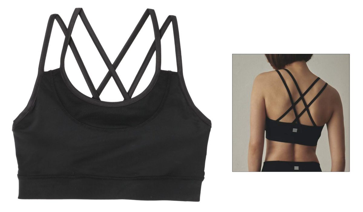 背中のバッククロスデザインがセンシュアルな印象をもたらすブラトップ。ほどよい厚みをもちながら、アクティブな動きに対応するストレッチ素材を使用し、ストレスフリーな着心地を叶えます。取り外して洗えるカップ付きで、ワークアウトやヨガなどのスポーツシーンを美しく、おしゃれに演出してくれるでしょう。