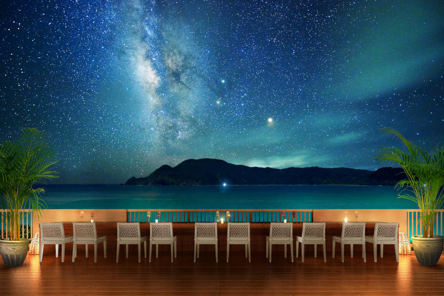 洗練された建築デザインは、世界を舞台に活躍する建築家・上田斉氏による監修。1階はフロントとレストラン、2階~4階は客室フロアで全室オーシャンビュー!各フロアは海、森、太陽をテーマにした壁画や、それぞれ異なる香りが演出されています。屋上テラスにはドームソファやデッキカウンターが設置され、満天の星空を観測できます。(現在コロナ対策のためBAR営業は一時休業中)