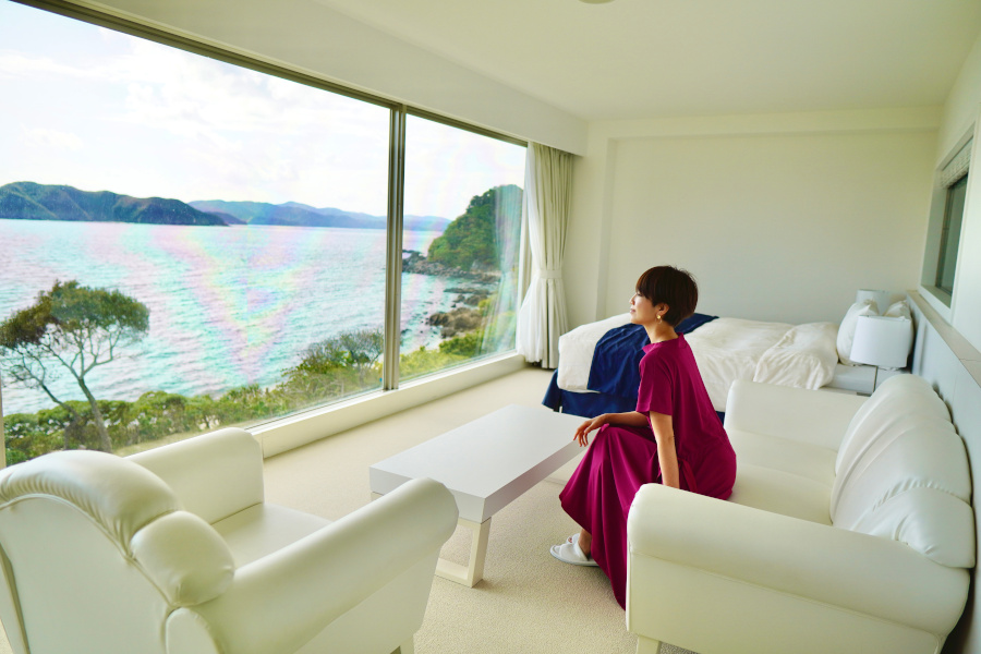 海や空の青と、この部屋の白のコントラストが美しく、快適で心地よい時間を過ごせます。