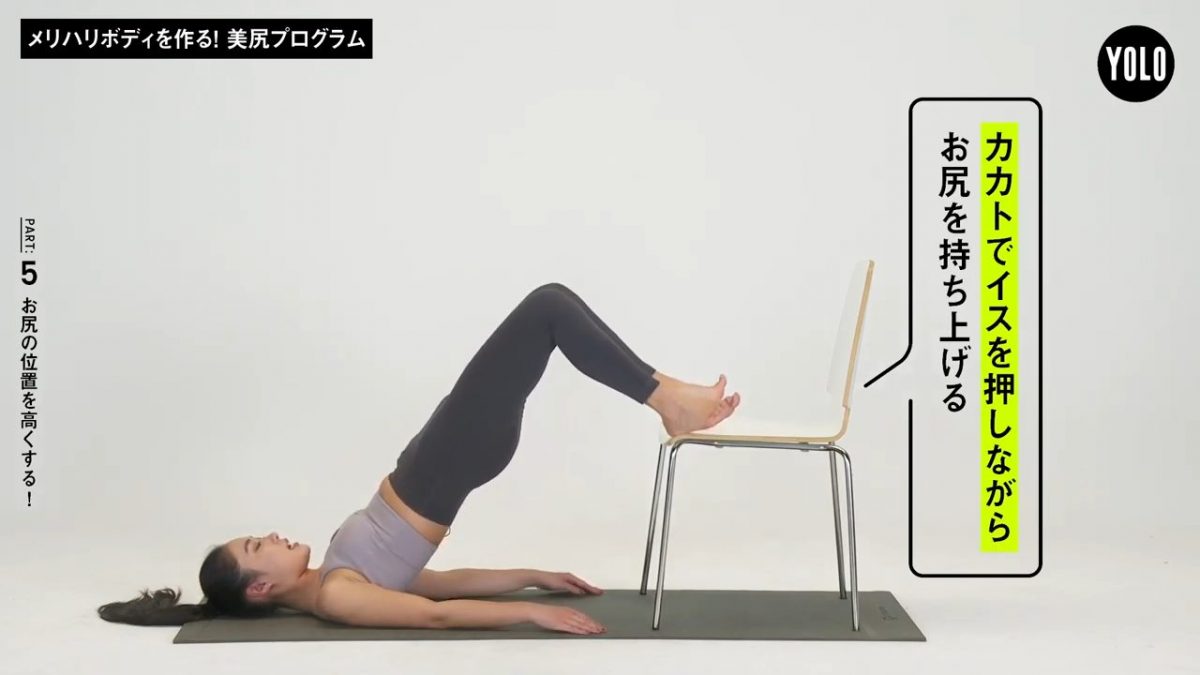 第5回は、お尻の位置を高くするトレーニングをご紹介します。お尻の位置が高くなると、脚が長く見えますよね。今回のトレーニングはお尻全体にガツンと効かせることができます。コツはお尻をキュッと締めること!では一緒に行っていきましょう。