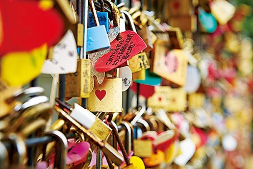 最後は恋人たちのパワースポットとして知られている「恋人の丘」。ここには、二人一緒に鐘を鳴らすと永遠の愛を約束できるという龍恋の鐘があります。愛を誓う南京錠がびっしり。