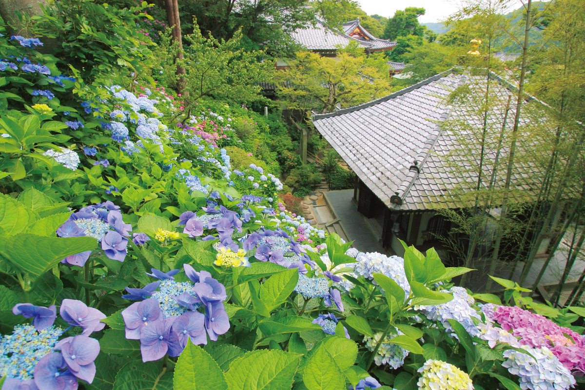 自然の絶景を堪能したいならここ「長谷寺」へ。特に紫陽花の時期には、眺望散策路を埋め尽くす約2,500株のあじさいを見ることができます。長谷寺のあじさいは、40種類以上と品種が豊富なのも特長。そのため開花が少しずつずれ、長い間楽しめるのもうれしいポイントです。