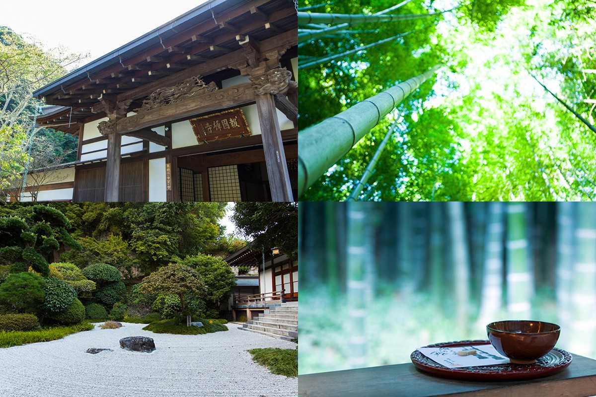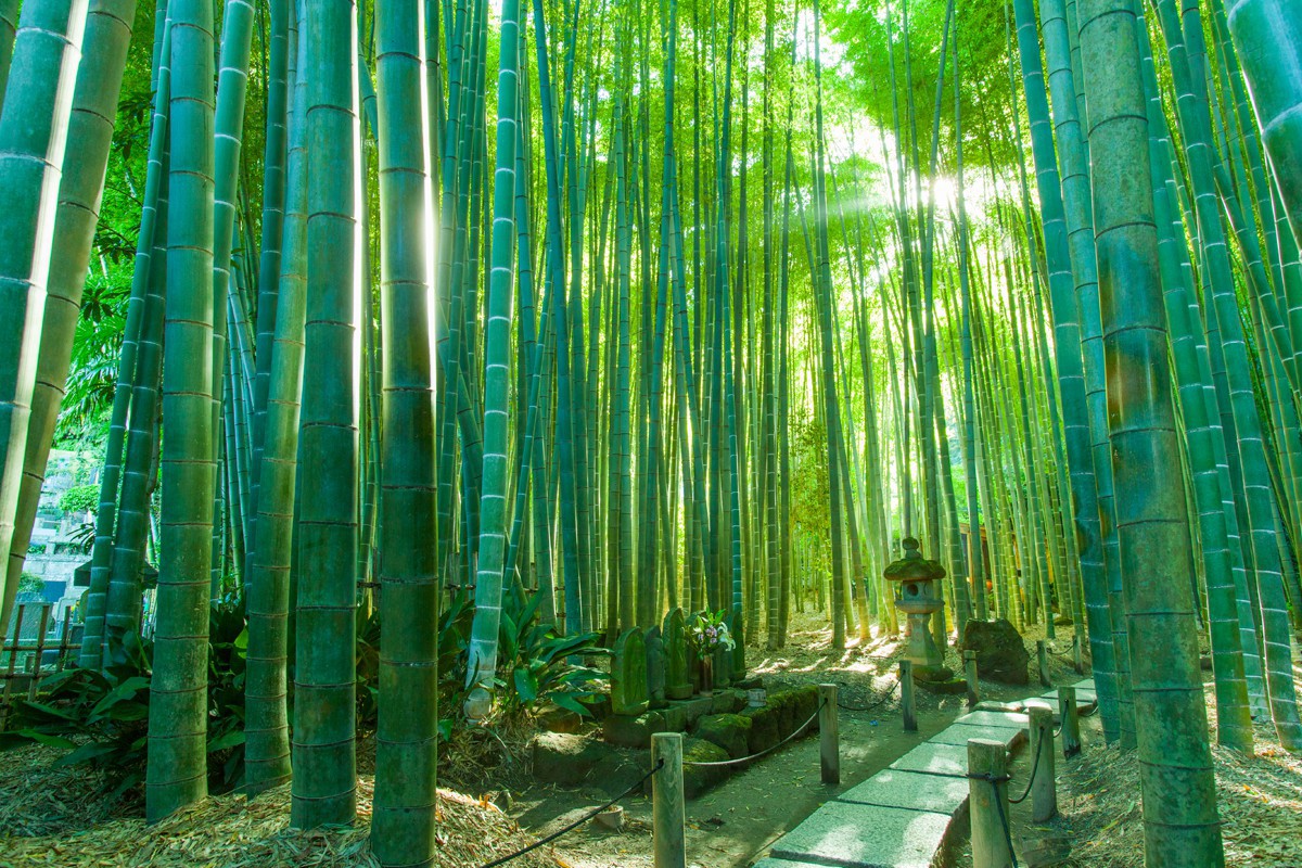 まず最初の絶景スポットは、美しい竹林で知られ、「竹の寺」とも称される鎌倉の名刹・報国寺。南北朝時代に建てられた本堂や枯山水の庭など見どころが多いですが、約2千本の孟宗竹が年間を通して青々と茂る「竹の庭」は格別です。柔らかな陽の光を浴び、爽やかな空気を感じながら緑の下を歩けば、いつしか心がほぐれ、癒されるのを感じるはず。