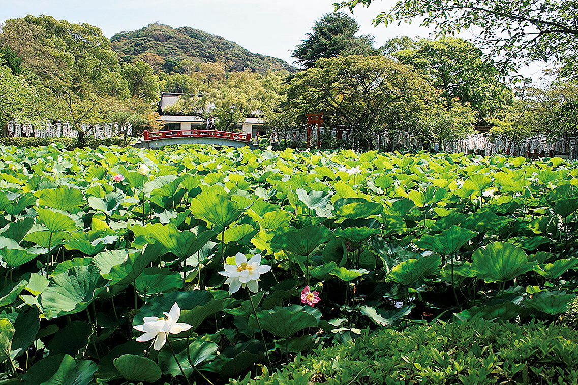 全国にその名を轟かせる鎌倉の最強パワースポット鶴岡八幡宮。東の源氏池(げんぺいいけ)は島が3つ(=産)、西の平家池は島が4つ(=死)それぞれの栄枯盛衰を表しているといわれています。春は桜、夏はハスの花が見頃で、写真スポットとしても人気です。