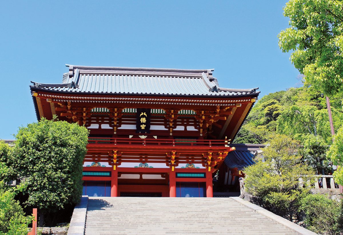 次は鎌倉観光に外せない名所「鶴岡八幡宮」へ。1063(康平6)年、源頼義公が八幡宮を由比ヶ浜近辺に祀ったのがはじまりで、1191年に上下両宮が現在の地に整えられました。三の鳥居を抜けると、静御前が舞を納めた若宮廻廊跡に建つ舞殿、大石段を上った奥にある本宮など、時を超えていまに伝わる建造物が点在します。