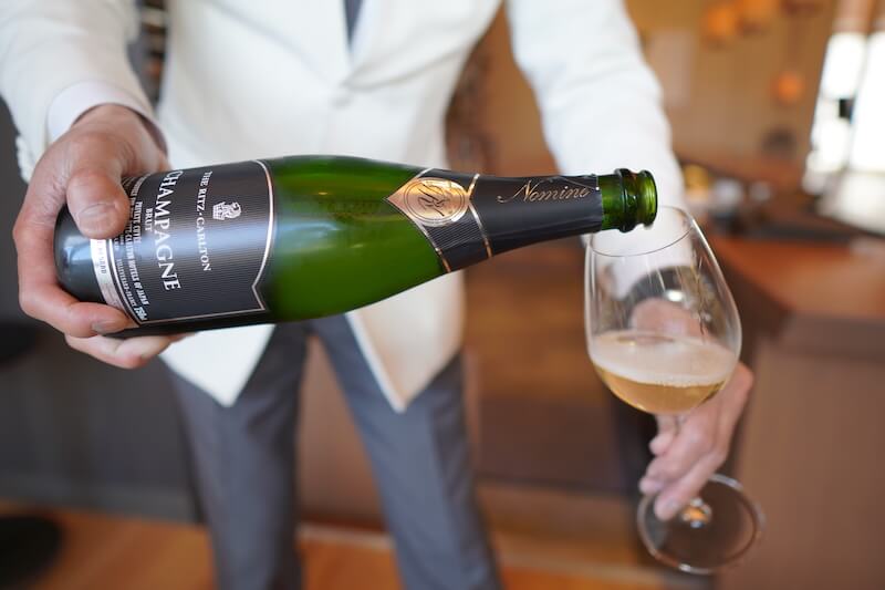 チェックインはロビーの先にある「The Bar(ザ・バー)」や「The Library(ザ・ライブラリー)」エリアにて行われ、ウェルカムドリンクにはシャンパン(ノンアルコールも可)を。