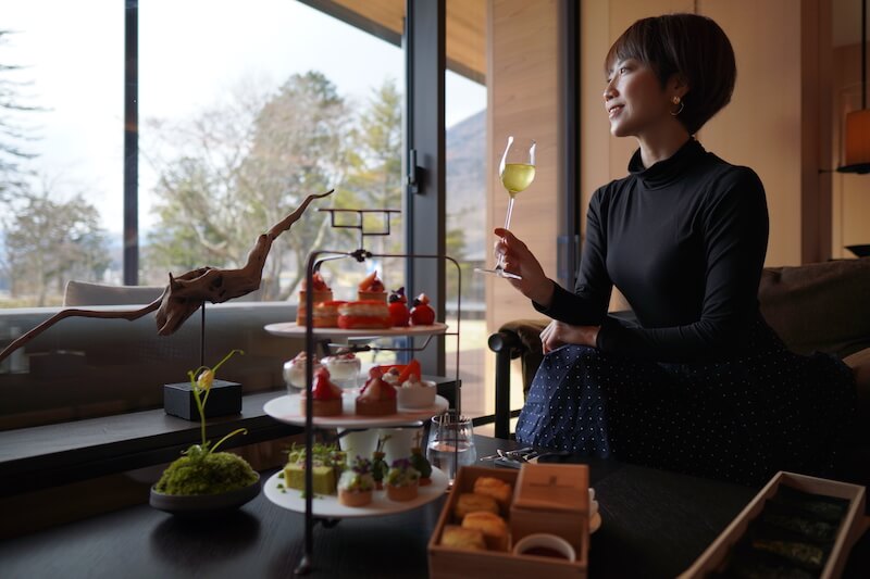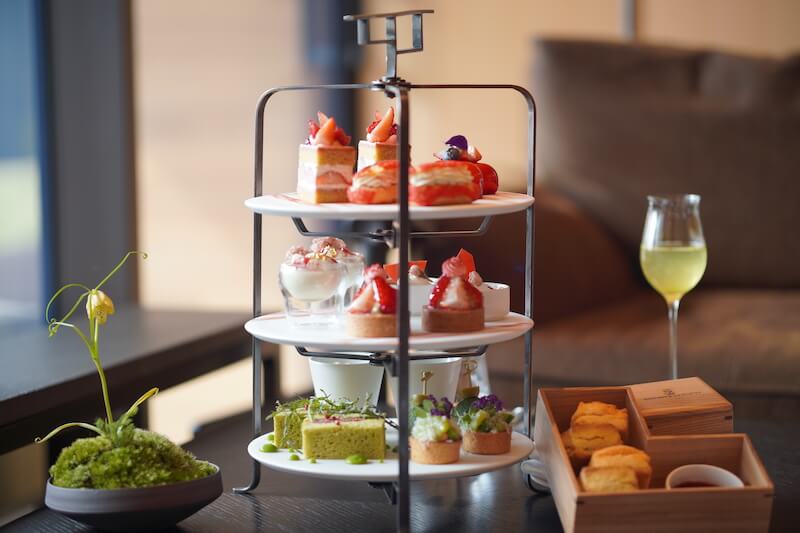 4月後半から5月にかけて奥日光を彩る山桜「オオヤマザクラ」と、日本一の生産量を誇る栃木県産の「とちおとめ」や「スカイベリー」など数種の苺をテーマにした春のアフタヌーンティーで、奥日光に届く一足遅れの春の到来を体感しました。