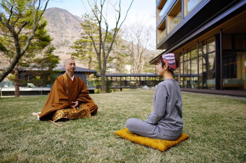 奈良時代末期に創建された世界遺産「日光山輪王寺」の別院、日光山中禅寺立木観音の僧侶の誘いのもと、向こうに見える中禅寺湖を感じ、清々しい朝の太陽を浴びながら座禅を組み、呼吸と会話をしながら、今の自分の内側に静かに目を向けます。20分間が長く感じるも短く感じるも人それぞれ。※季節や天候に応じて開催場所が変わります。