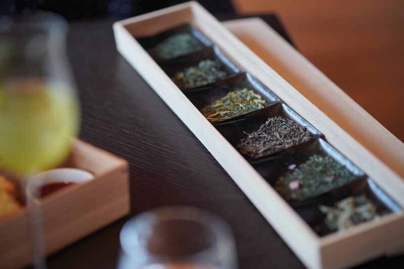 コーヒではなく、あえて日本茶や季節のブレンド茶を取り入れることで、和と洋の絶妙なマリアージュを堪能できます。