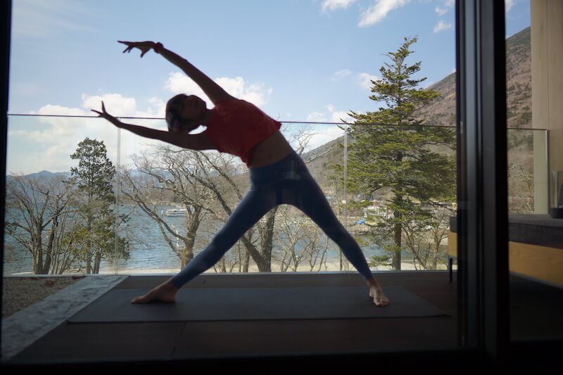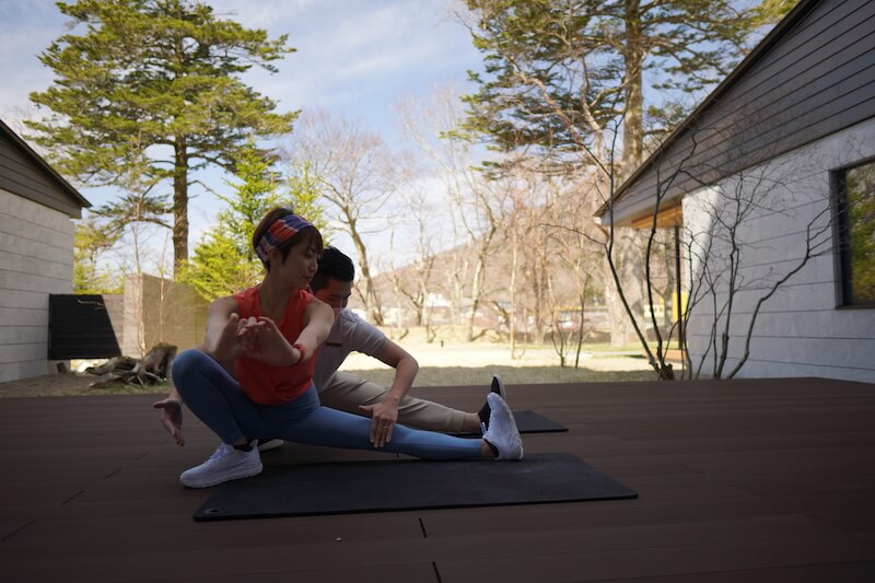 まずは、屋外テラスを備え、男体山や中禅寺湖を望める24時間利用可能なフィットネススタジオで、カウンセリングをもとに、ゲストの身体の悩みや希望に合わせてトレーニングプログラムを組んでくれます。