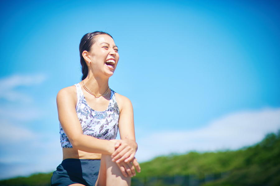 ピラティスのときにもしっかりカラダにフィットしてくれているので、どんなポーズも安心してとることができます。最近は、波をチェックしながらランニングをしているんです。私はこれを「波ラン」と呼んでいます(笑)。そのときにもSpeedo「GetFIT」を着用しています。いい波を発見したら、すかさず海へ!水陸両用だから着替える必要もないし、また波ランに戻ることもできていいですよね。