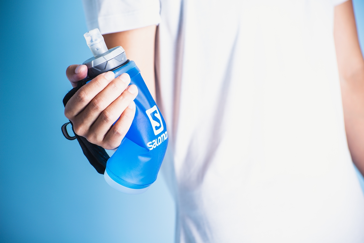 最近、ハードボトルに替わってじわじわと人気を集めているのが、この「フラスク」というハイドレーション。いくつかサイズ展開がありますが、なかでもランナーにとくにおすすめなのがコレ。付属のベルトでしっかり手にフィットし、いつでも簡単に水分補給できるうえ、飲み終えた後は小さくまとめてポケットに収納できるスグレモノです。