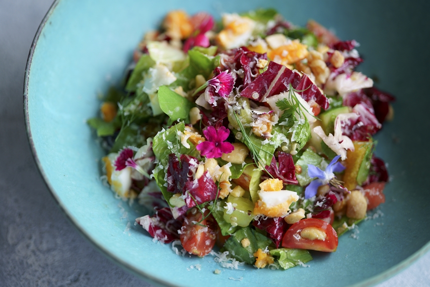 全ての時間帯で共通して提供するイチオシメニューは、 ひとくちごとに味がかわる「レストランのサラダ」です。 また、食事の一皿ずつに合わせた季節を感じるアルコール、ノンアルコールのペアリングドリンクも提供。その他、素材にこだわった自家製クラフトドリンクや、アジア人初のWORLD BREWERS CUP世界チャンピオンの粕谷 哲(カスヤ テツ)氏が監修する、全生産量の5%に満たない高品質かつ希少なコーヒーも味わえるのだとか。