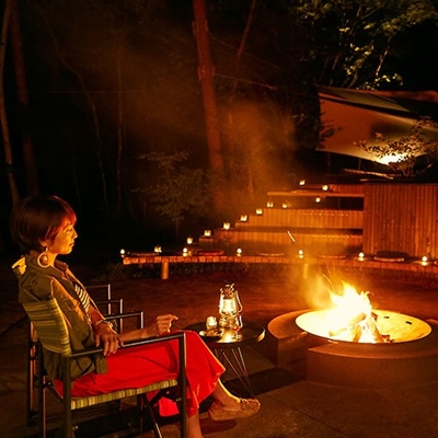 富士箱根伊豆国立公園の特別地域にある、日本初のグランピングリゾート「星のや富士」は、全40室のスコープのようなキャビンが並びます。冬に行くなら、あたたかく快適に過ごせるテラスや、ワイルドライフ好きなシェフがおすすめする「山麓の狩猟肉(ジビエ)すき焼き」がおすすめ。冬の凛とした空気の森の中で、焚き火の暖かさを感じながらゆったりと食事を楽しむのは格別の気分です。