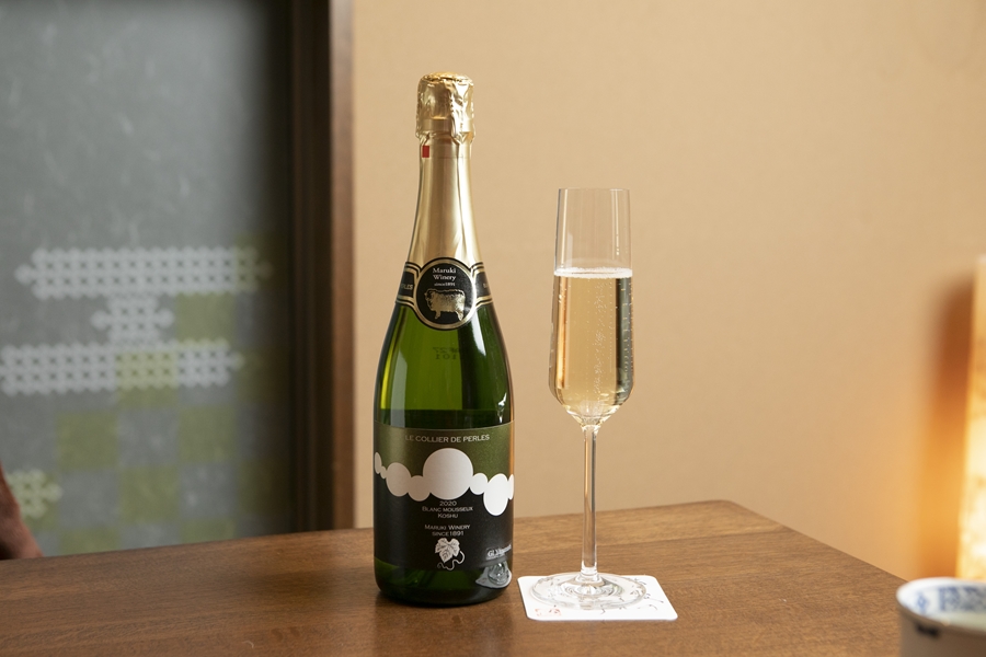 食事に合わせて、甲州ワインを楽しめる3種のペアリングコースを選びました。まるきワインの原料である葡萄は、名の知れた多くの清流に恵まれた勝沼で育まれています。山梨の気候風土に合わせて品種改良された、醸造用品種である「樽甲斐ノワール」など面白い逸品にも出会えます。