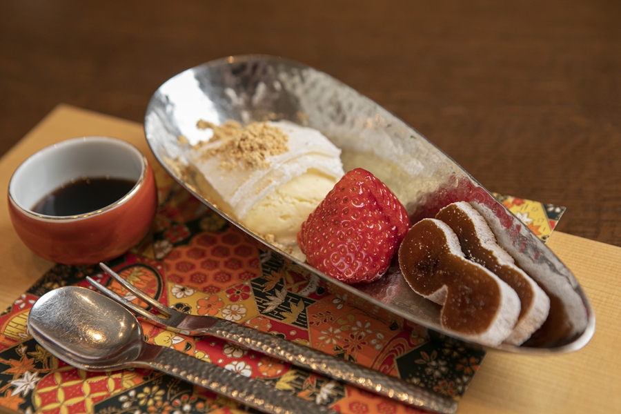 坐忘の朝ごはんもまた贅沢。甲州の素材を知り尽くした、料理長渾身の旬の献立が並びます。生姜を添えた自家製豆腐の葛煮からはじまり、体を温め、目覚めさせます。