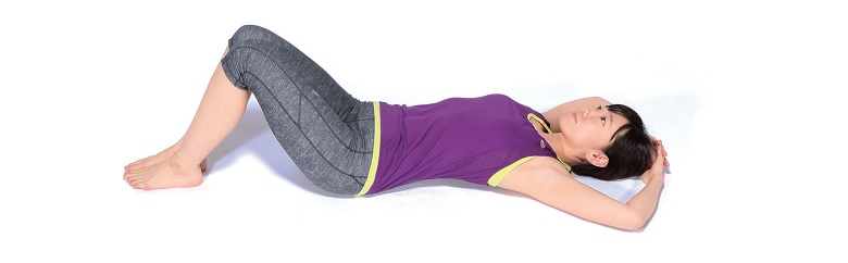 - 仰向けになり膝を曲げて、両手は頭上で組む。