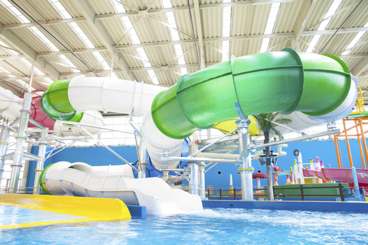 全長150mのロングチューブの中を高速で滑り抜ける「パニックトルネード」や傾斜70度を急降下する「続・ぞくぞくバーン」など、ユニークで怖楽しいスライダーが大人気。日焼けや雨の心配がなく1年中快適に過ごせるのも魅力です。