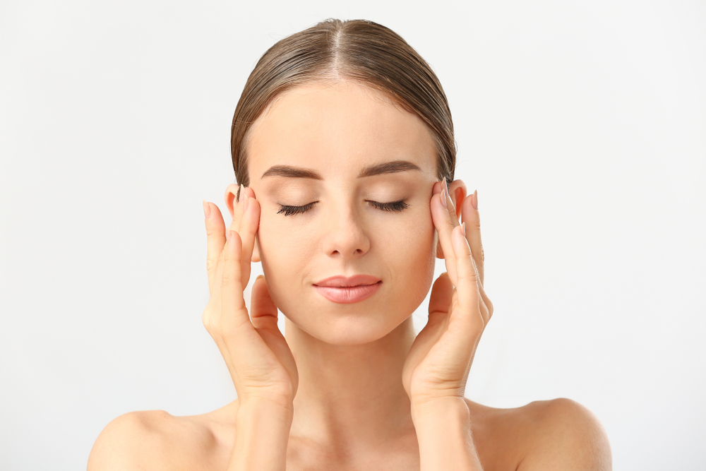 ・こめかみ、眉の間、小鼻のわき、鼻と口の間、アゴの真ん中にある少しへこんだ場所を、息を吐きながら指の腹で押す。なでたり温めたりするだけでもOK