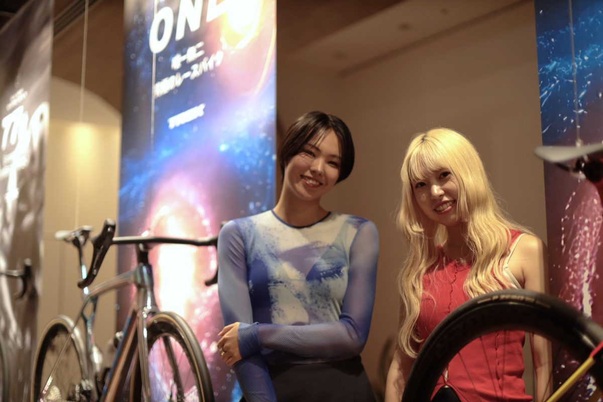 今回、ポップアップイベントに参加していたモデルアスリートの2人も究極のフィットネスでもあるロードバイクには関心をよせていました。