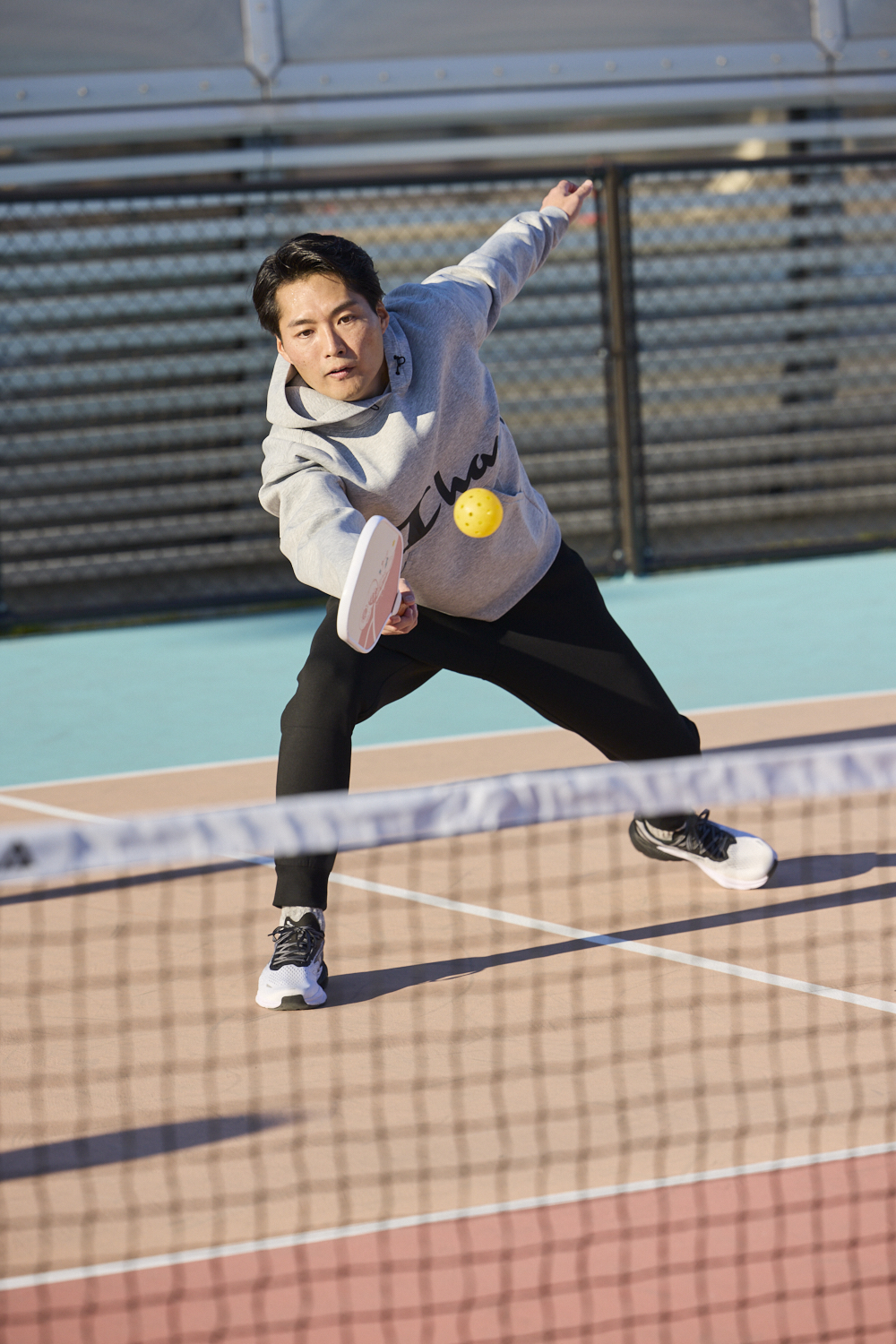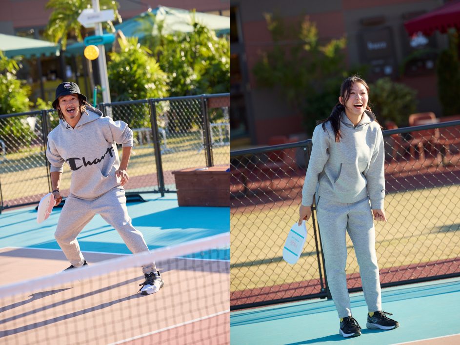 オススメは、同じアメリカ生まれの「チャンピオン」から発売されている「TECH WEAVE®(テックウィーブ)」 3LS フーデッドスウェットシャツ&パンツ。抜群の着心地の良さに加え、非常に軽量で動きやすく、高い保温性と通気性を兼ね備えています。プレー中はもちろん運動後も快適でいられるので、フットワークが軽くなること間違いなし。そんなチャンピオンの機能スウェットを着用しピックルボールを体験してもらうイベントが開催されました。