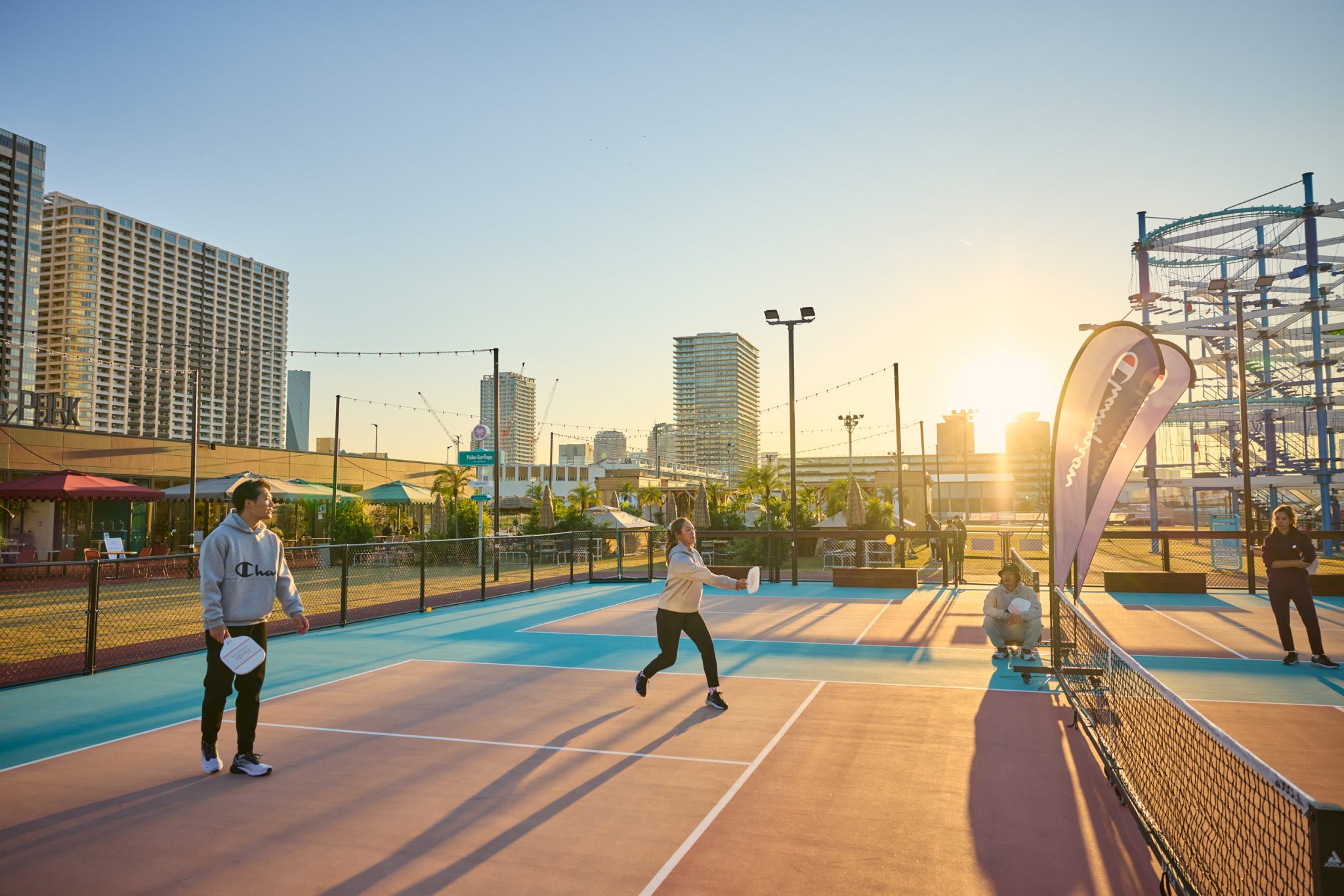 開催場所は有明「livedoor URBAN SPORTS PARK」内にある「Pacific PICKLE CLUB」。カフェも併設されており、リゾート感のあるおしゃれな雰囲気の場所です。 この日初めて会うメンバーがほとんどでしたが、「ラリーしてるうちにずっと前から知り合いかってくらい打ち解けられました」、「ルールは簡単で、コツを掴めば誰でもできるのに、マジで白熱する」。など、楽しんでいる参加者の声が印象的でした。