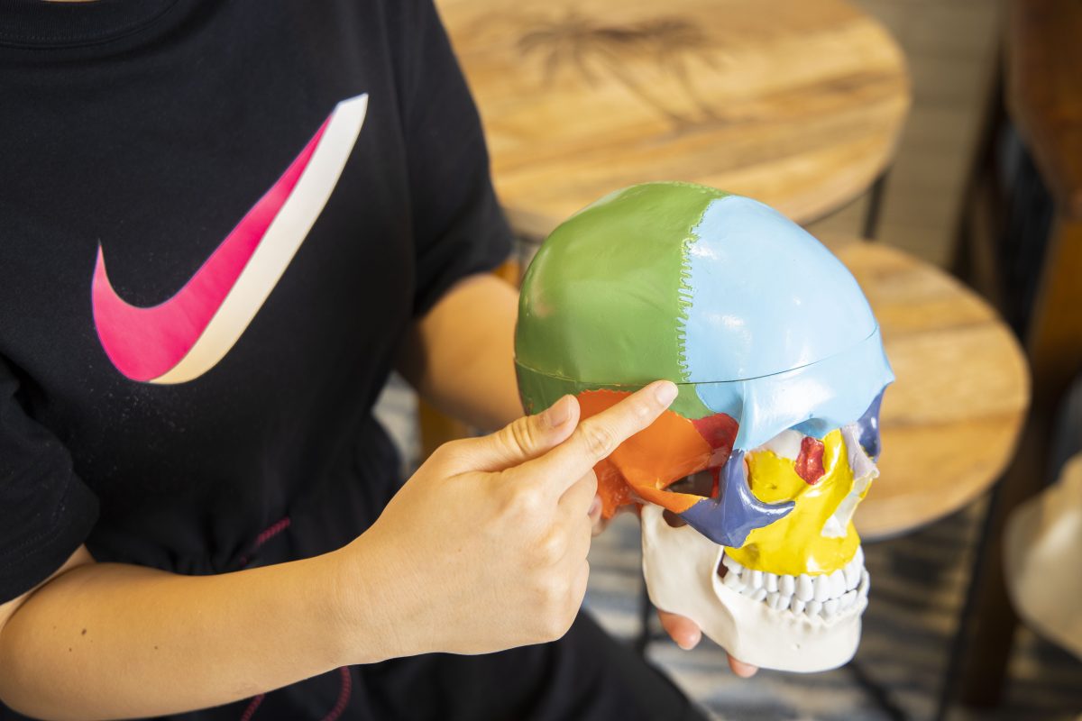 「頭蓋骨は、23個の骨のパーツが組み合わさっています。その一つひとつは、縫合という関節のような役割のもので繋がっています。その縫合が、実は呼吸と一緒に膨らんだり閉じたりしています!」