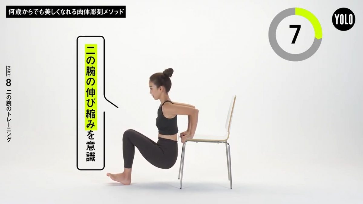 第8回は、二の腕のトレーニングです。二の腕は、肩や背中と隣接している部分。肩の後ろ側と背中を鍛えることで、腕にもくびれシルエットを作ることができます。同時に、腕の裏側にある「上腕三頭筋」にアプローチして、しっかりと引き締めていきましょう。