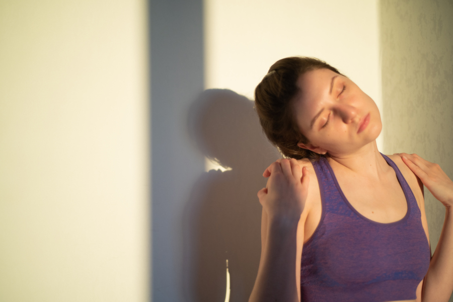 肩こりを解消するためには、長時間同じ姿勢でいないことが重要です。ストレッチなどで、定期的に肩周りの筋肉をほぐすとよいでしょう。