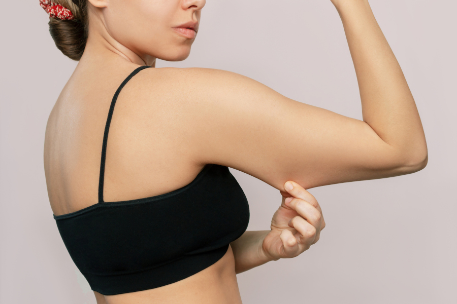 二の腕のたるみは、上腕三頭筋という腕の裏側の筋肉が衰え、脂肪がつきやすくなることが原因です。