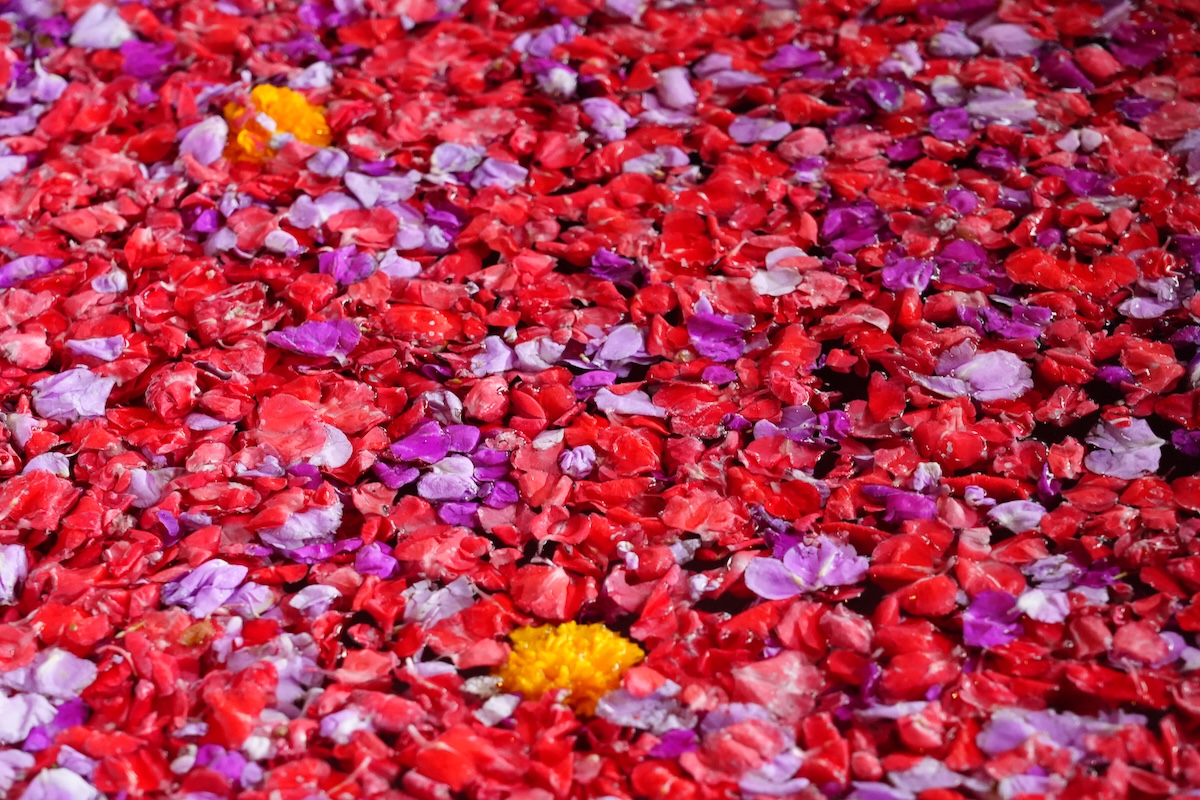 午後はスパで極上の癒しを。バリの自然から採れたアロマオイルで全身を丁寧にほぐした後は、フラワーバスへ。鮮やかなブーゲンビリアやバラの花びらが湯面いっぱいに広がり、まるで花の絨毯に身を委ねるよう。谷から吹き抜ける風と花の香り