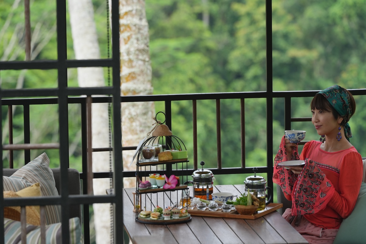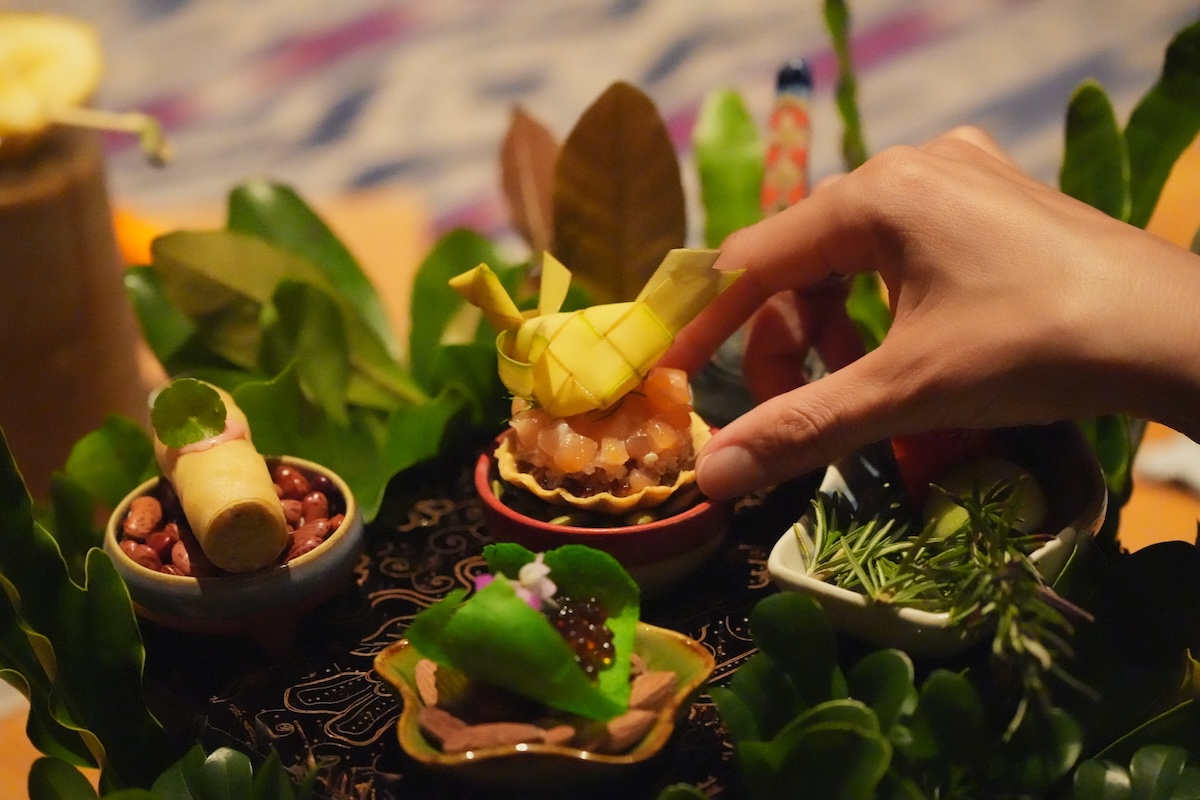 られた料理を食べる伝統的なスタイル「ティラハン」を体験。鳥のさえずりと谷を渡る風に包まれながら、地元食材を使った繊細な料理が身体に沁み渡ります。