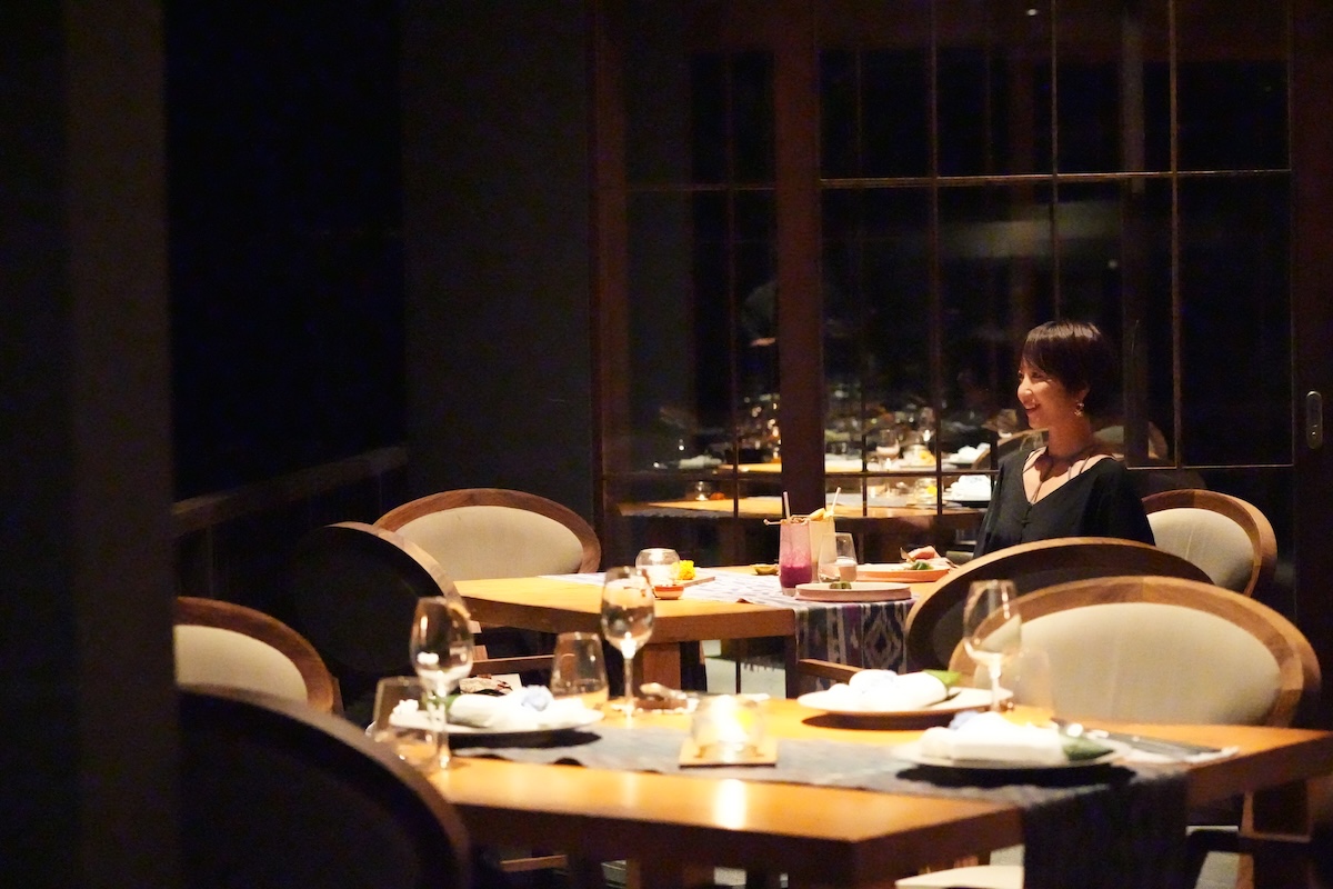 夕暮れ時のカクテルタイム。バリの伝承や食材にインスパイアされたオリジナルカクテルやモクテル、スナックが振る舞われます。どの一口にもバリにまつわる物語が詰まっていて、沈みゆく太陽と共に心が静かに解けていくよう。朧月を眺めながらゆるやかに夜を迎えます。