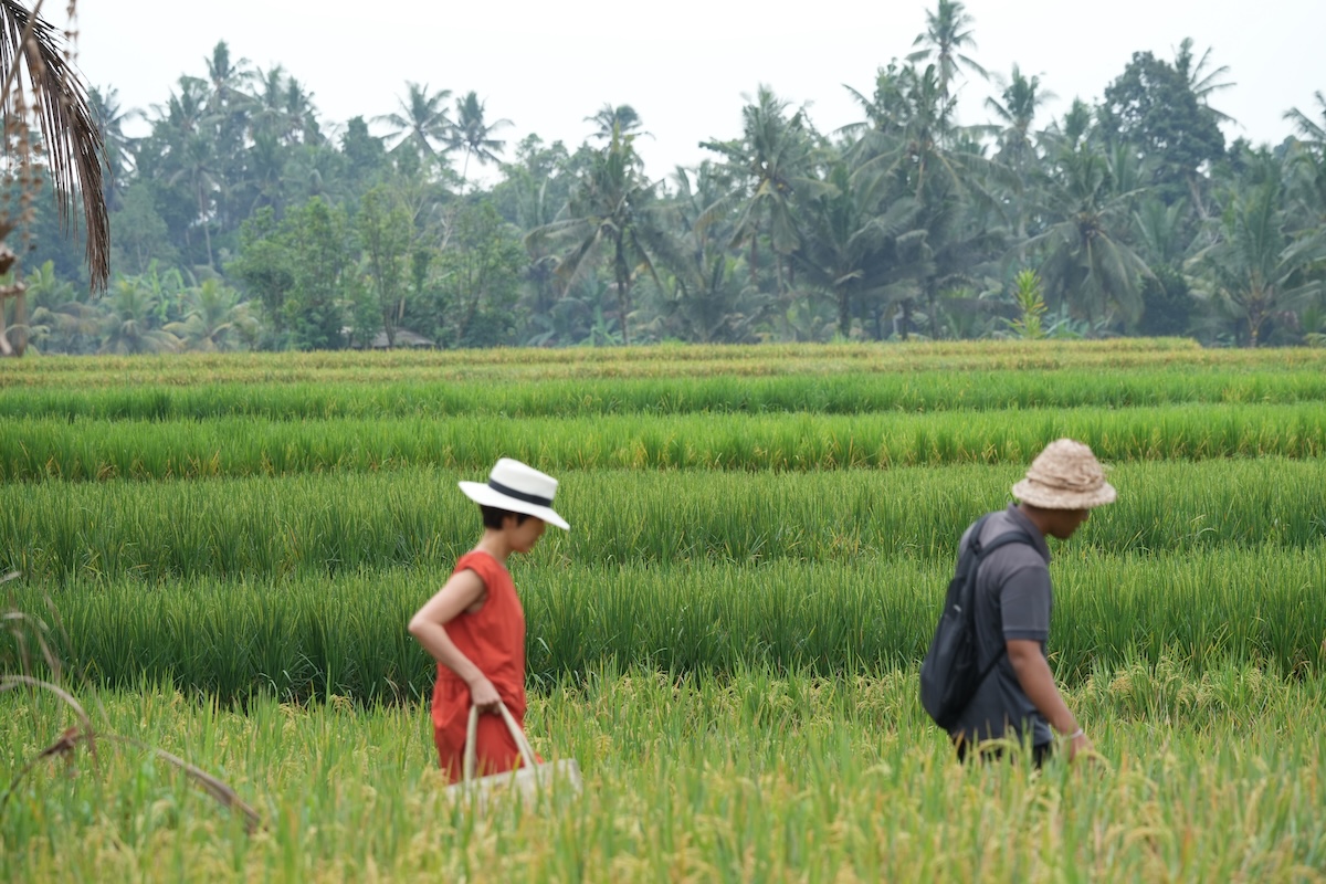 少し早起きして朝の光に包まれながら、地元ガイドと共にウブドのライス・フィールドを散策。バリの原風景が残る地で、朝露に濡れた稲穂の間を静かに歩きながら、土の香り、動物の鳴き声、働く人々の笑顔に触れて、この島の素朴で温かい日常を垣間見るひと時。ほんの45分の散策は心をゆるやかに整えてくれる時間に。