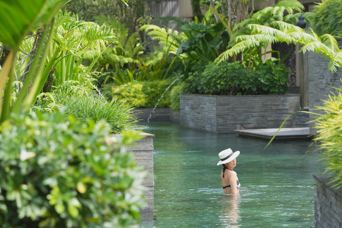周辺に存在するいくつかの集落が織り成す景観に溶け込むように設計された、全室プライベート感あふれるスイート仕様のリゾート。約3ヘクタールの敷地には、渓谷に浮かぶガセボ、川を模したプール、渓谷を望むダイニング、ウブドのダイナミックな自然や芸術文化に日本の美意識が融合した、唯一無二の空間です。