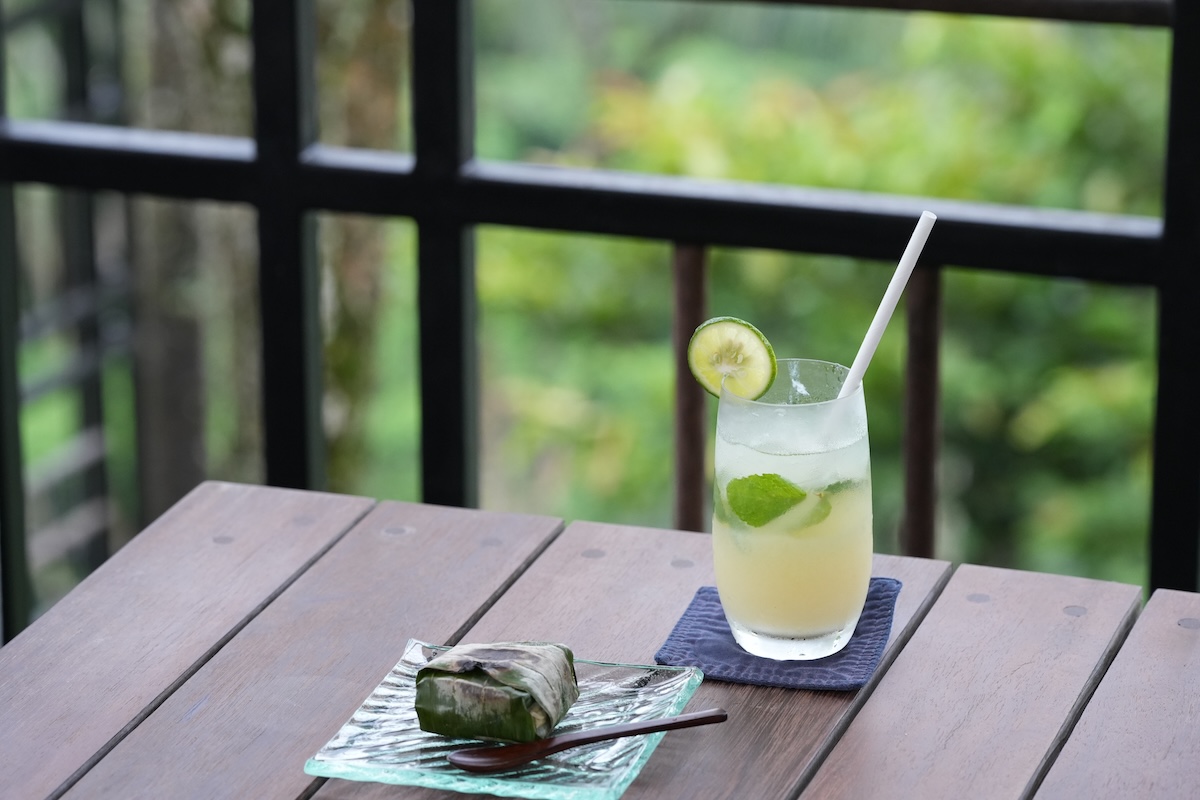 甘くて冷たい“タぺ(発酵キャッサバ)”のモヒートを片手に、深さ170mの渓谷にせり出すように建つ「カフェ・ガゼボ」でのんびり過ごす午後。渓谷から吹き抜ける風が五感をゆるめてくれます。