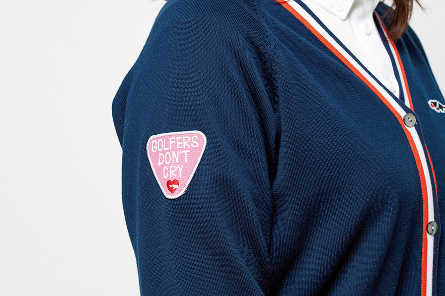 ブランド初登場アイテムであるカーディガンの袖ワッペンには、「泣かないで」=「笑顔でいようね」のメッセージが!