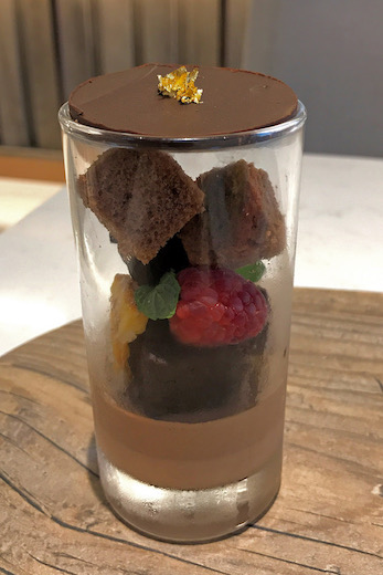 「大地の女神≒ガイア」をイメージし、ガトーショコラやビターチョコレート、アールグレイの生チョコレートに、ドライオレンジやフランボワーズがアクセントとなった、甘さとほろ苦さがマッチした大人なスイーツでした。