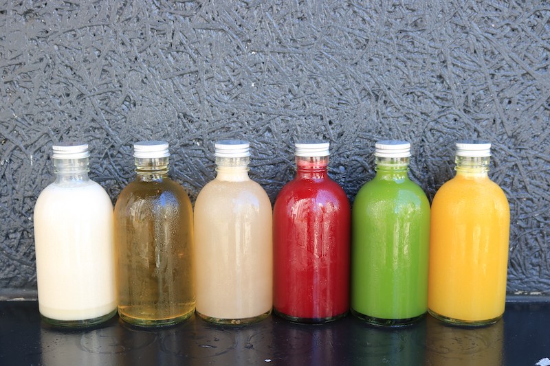 コールドプレスジュース4種類、KOMBUCHA オリジナル、ナッツミルクの計 6 本をセットにしたクレンズを予約購入することができます。